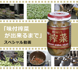 榨菜本来の製法(風干し、10数種の香辛料を使用した約1年にわたる甕詰め)を堅持した「四川榨菜」をそのままごはんのおかずや前菜として、又は料理の素材としても手軽にお使いいただけるように、ごま油と醤油などで味付を致しました。